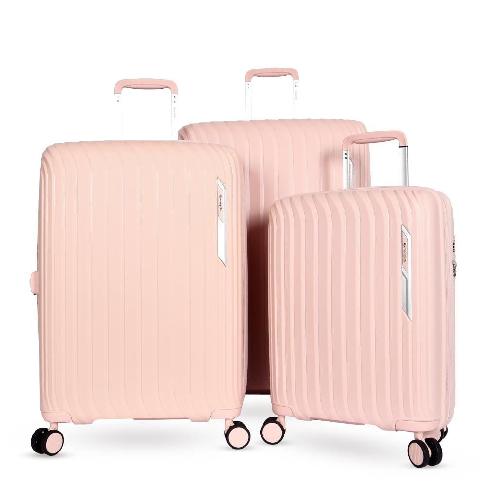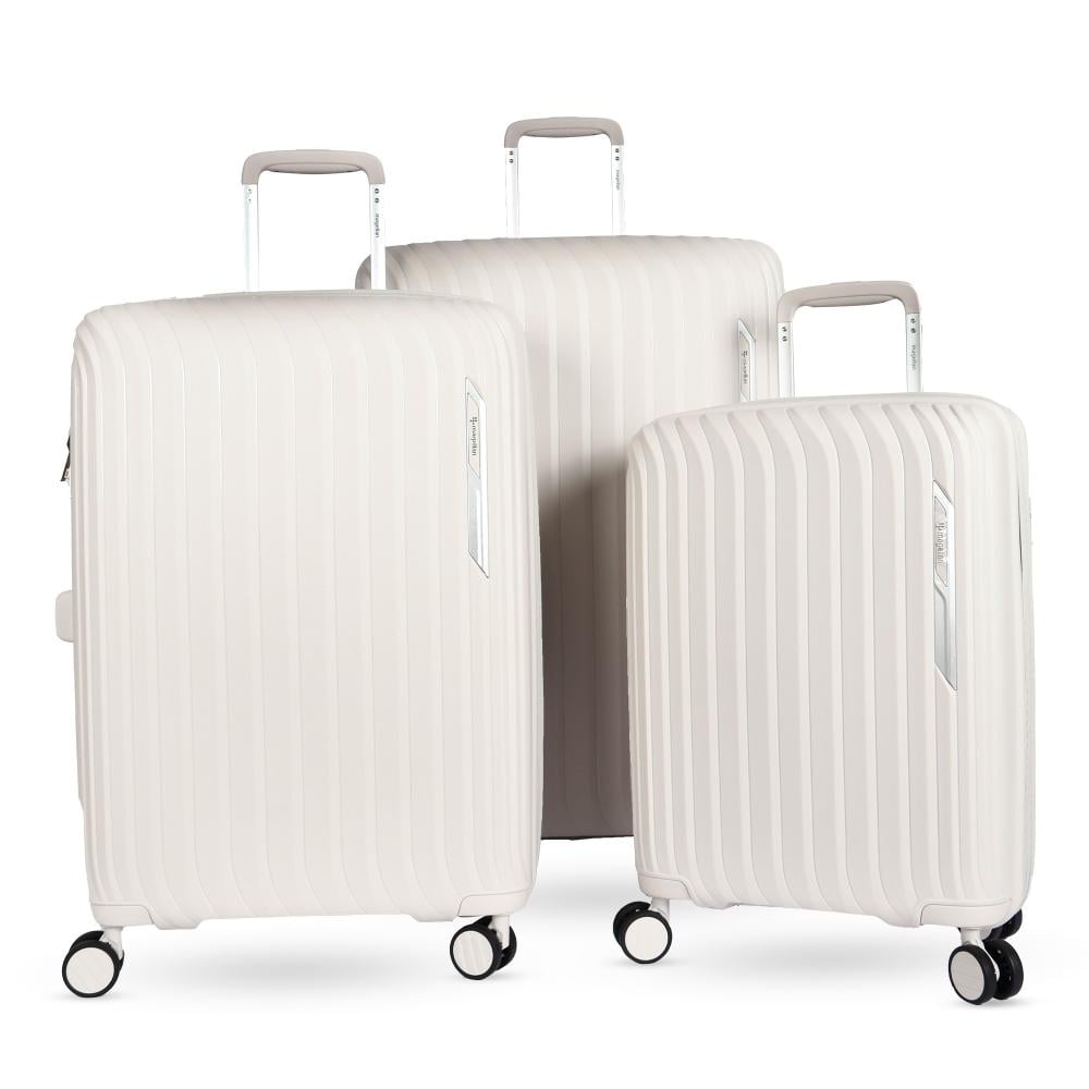 تتضمن المجموعة ثلاث قطع أمتعة بأحجام 20 بوصة و24 بوصة و28 بوصة، تلبي احتياجات الرحلات القصيرة أو العطلات الطويلة أو السفر العائلي.