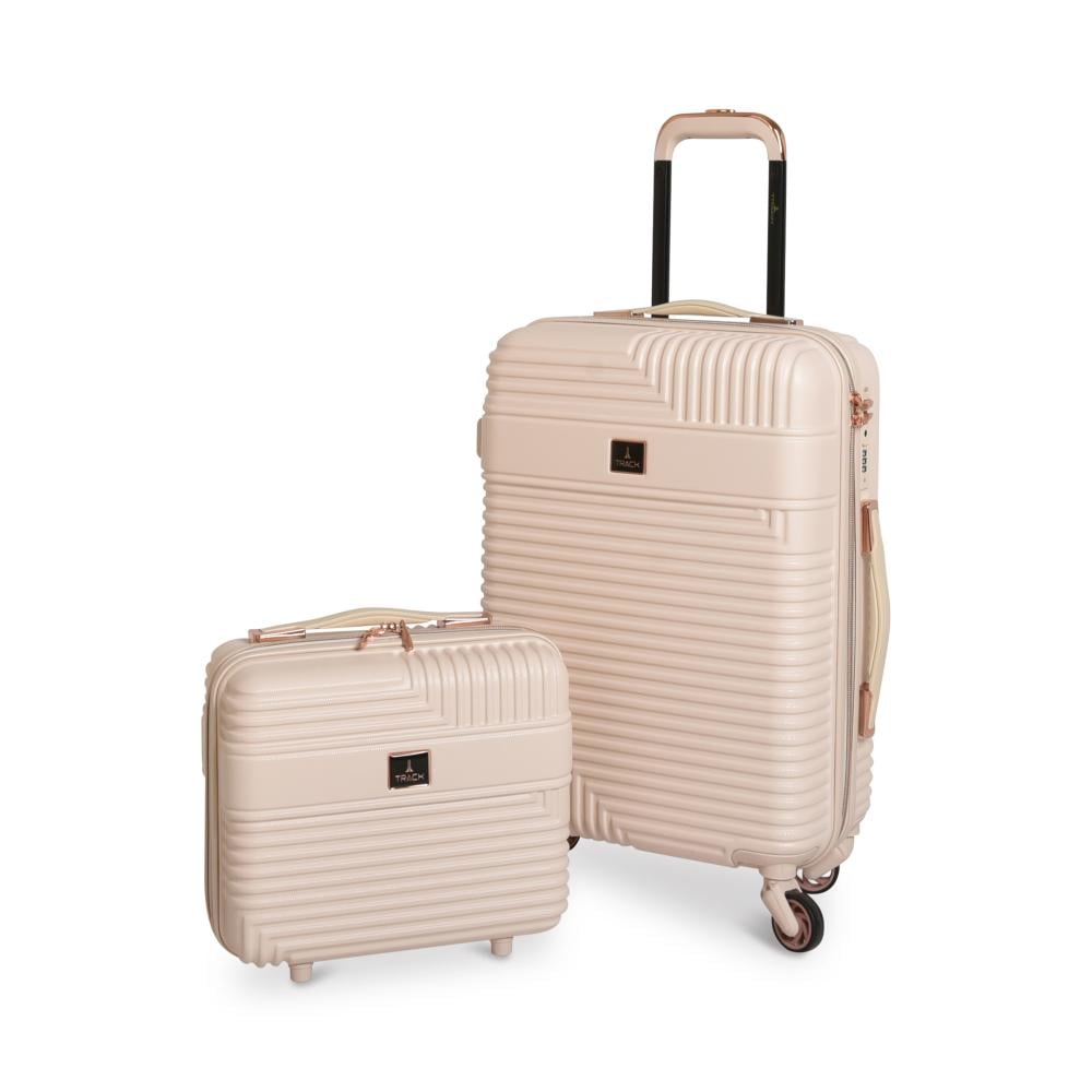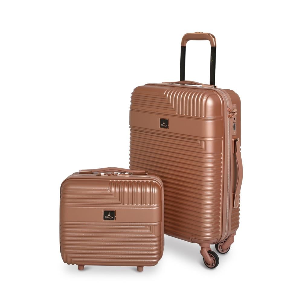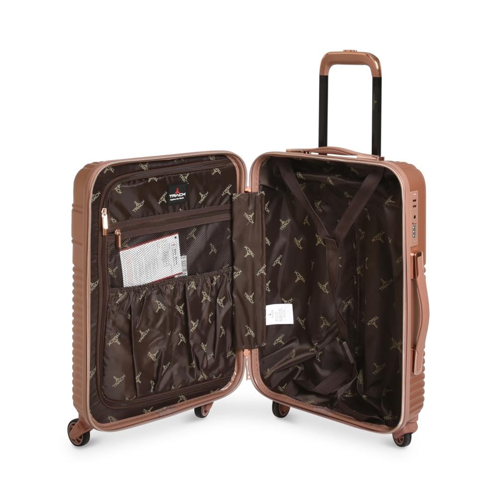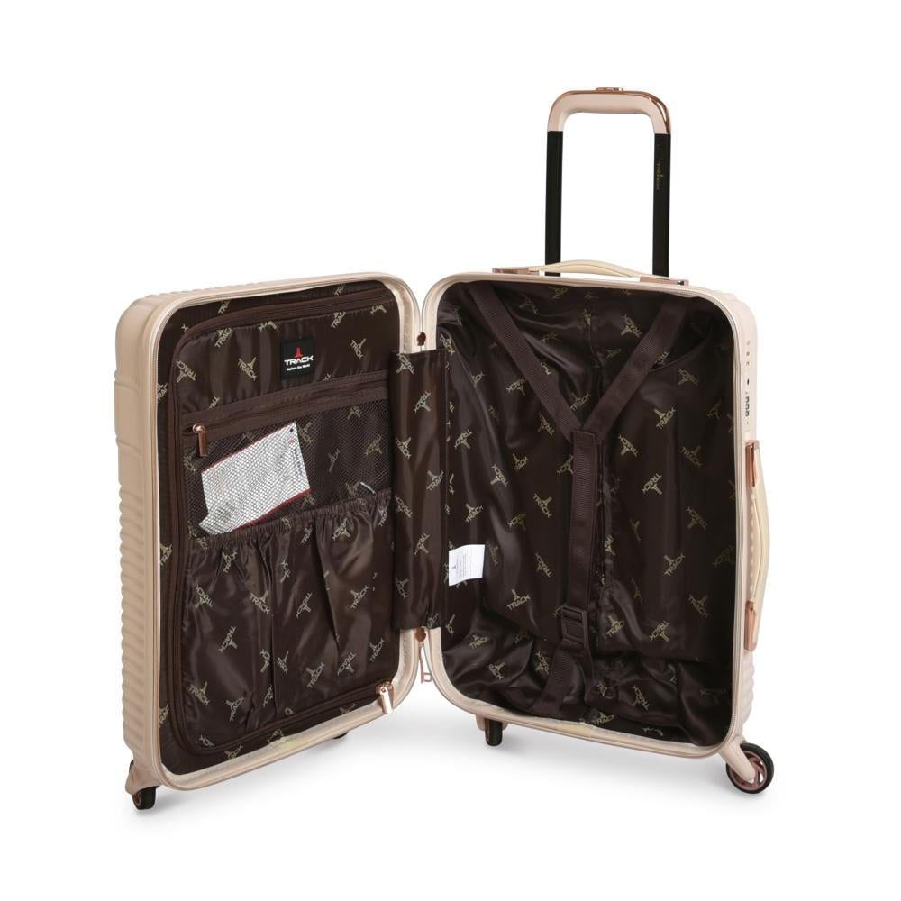 The Track HK222-2P 2-piece luggage set features a sturdy hard-shell construction, TSA-certified locks, and smooth 4-wheel 360° movement. Designed for safe and practical travel, it includes a telescoping handle with side handles for easy lifting, an inner metal frame for enhanced strength, and a spacious interior with compartments for organized packing.